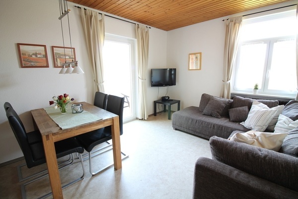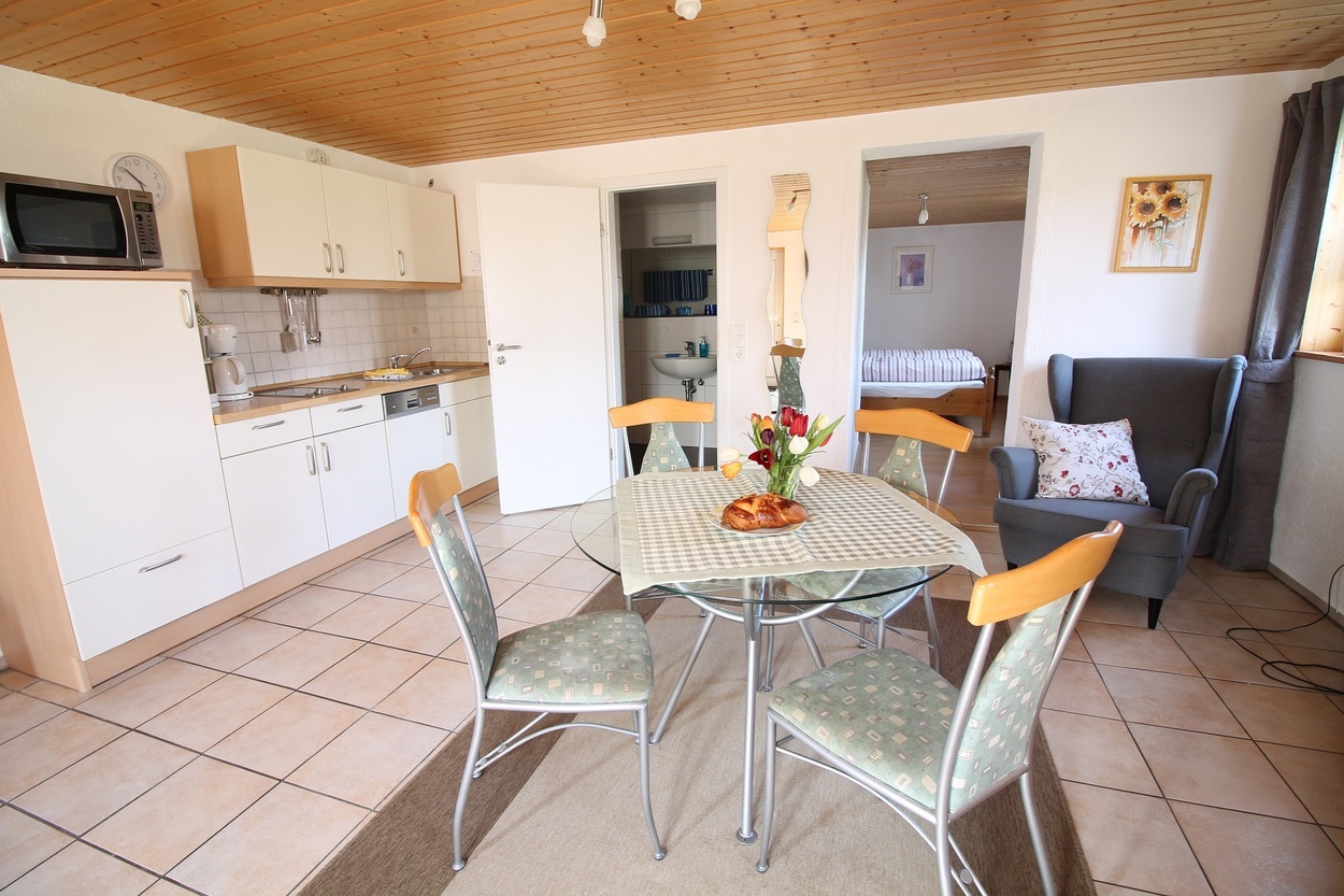 1 Schlafraum, großer Wohn-Essbereich, ausziehbares Schlafsofa für mögliche 3. Person, externer Eingang im Keller