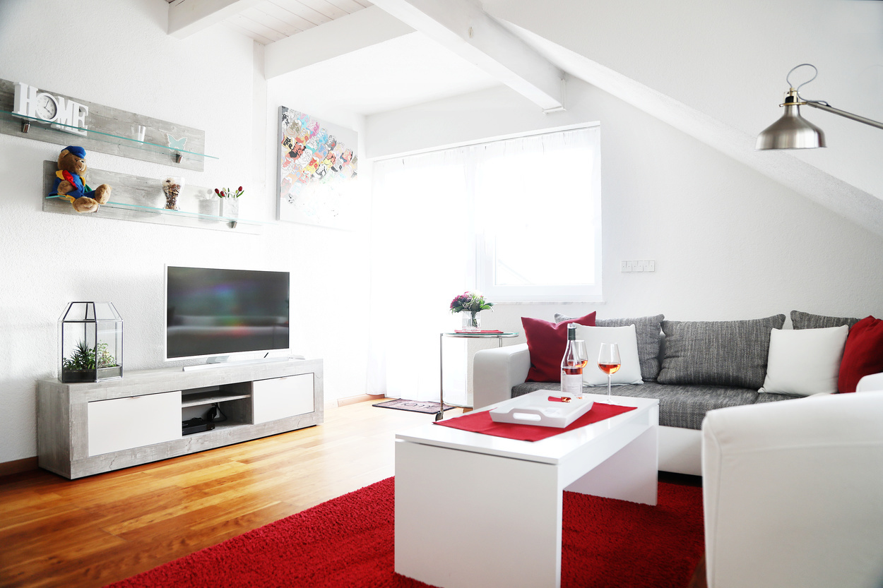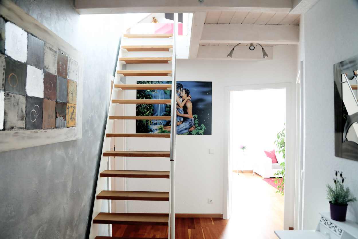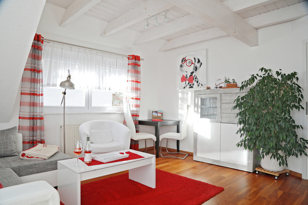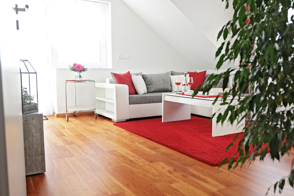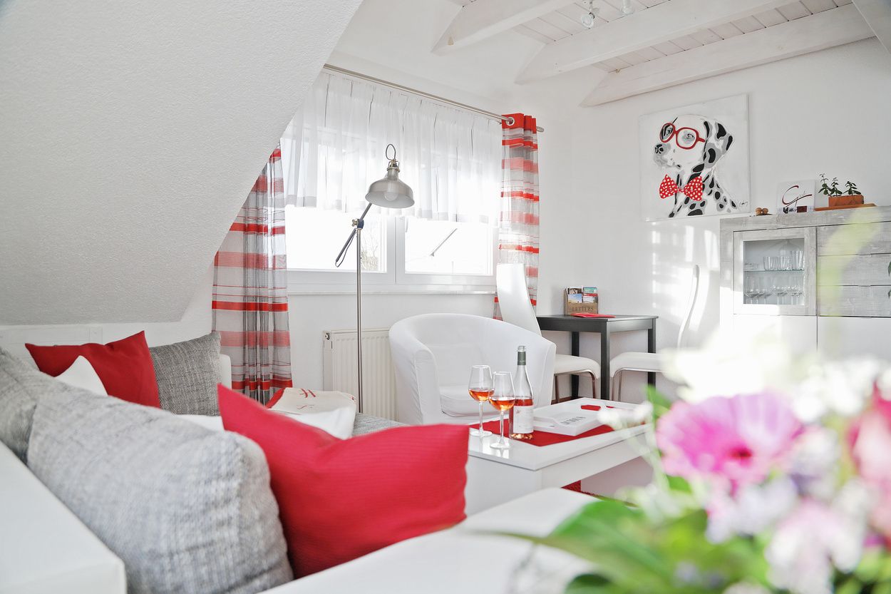 Die Ferienwohnung im 1. Obergeschoss ist modern und hell eingerichtet und bietet genug Raum für Familien mit Kindern. Die Ausstattung ist kinderfreundlich und verfügt über Beistellbett sowie Kinderhochstuhl etc.