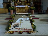 Am Festtag selbst bewegt sich über ihn unter Böllerschüssen, begleitet von Trachtenträgern, den Abordnungen der Vereine und unter den Gesängen von Chor und den Klängen der Trachtenkapelle die heilige Prozession.